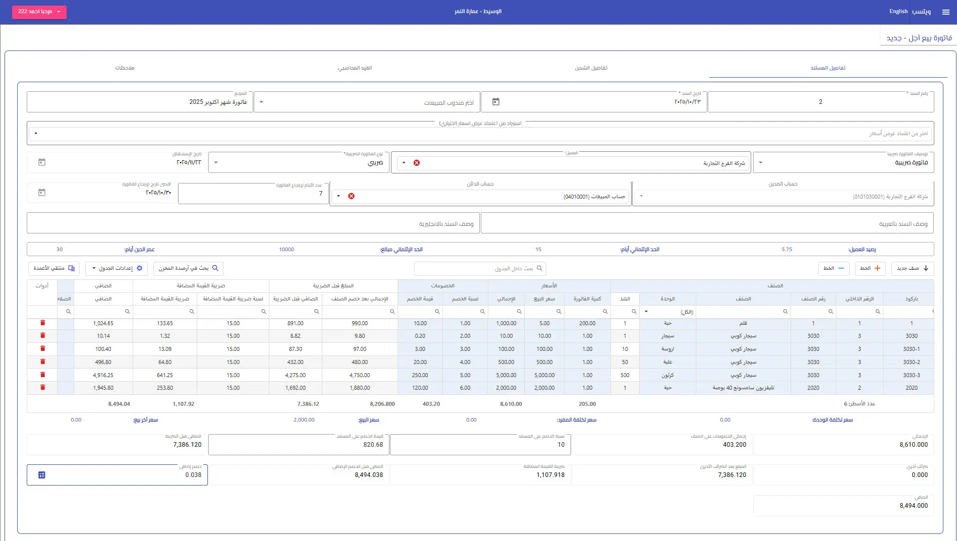 وتعامل مع عدد غير محدود من الحسابات، العملاء، الموردين، وأصناف البضائع